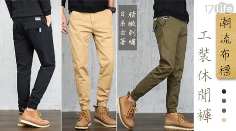 而且網路上潮流布標工裝休閒褲"就有的買,相當方便