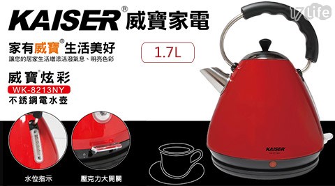 KAISER威寶-1.7L炫彩不銹鋼電水壺(WK-8213NY) 討論,推薦,開箱,CP值,熱賣,團購,便宜,優惠,介紹,排行,精選,特價,周年慶,體驗,限時